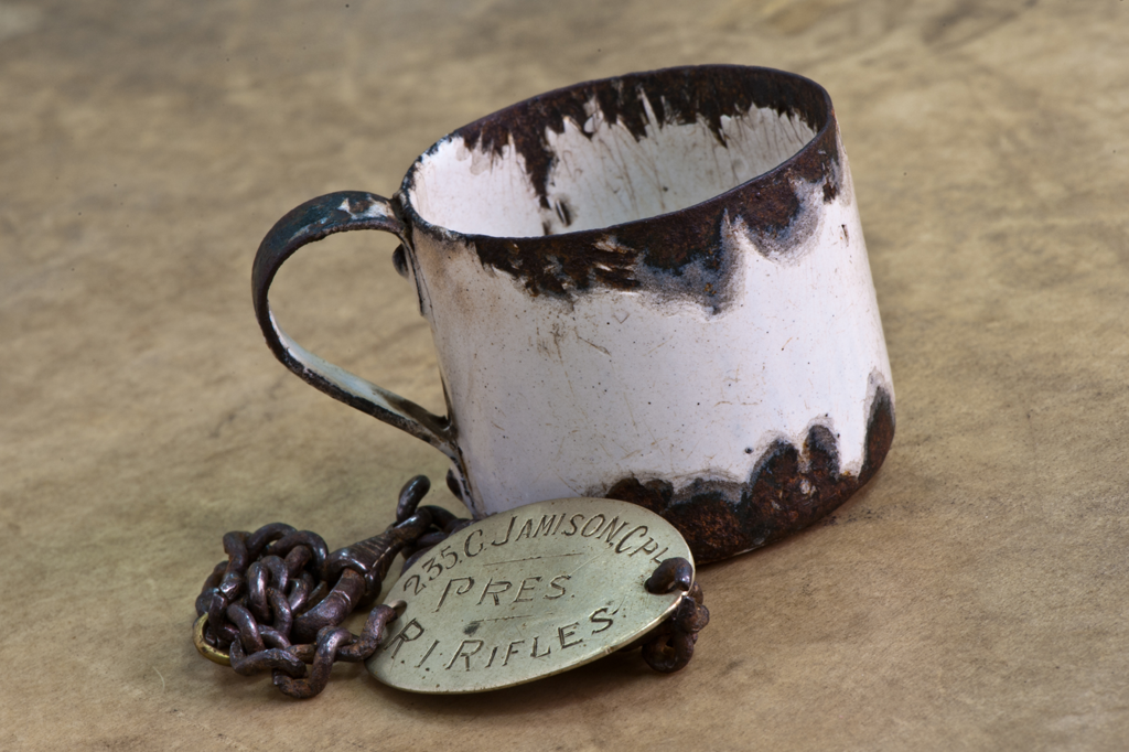 | A miniature tin cup for measuring a tot of rum |