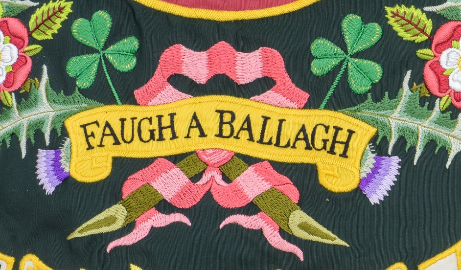 | Detail of the Regiment's Battle Cry on the Regimental Colour |