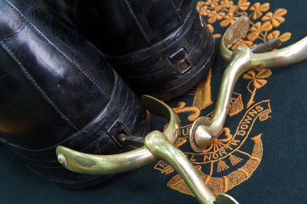 The spur on the left in the picture is, in fact, upside down and would not have fitted in the boot this way!