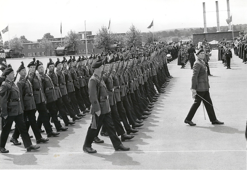 The 1st Battalion The Royal Irish Rangers, commanded by Lt Col W H Clements, ‘Troop the Colour’ at Battlesbury Barracks, Warminster on 16 June 1976.
