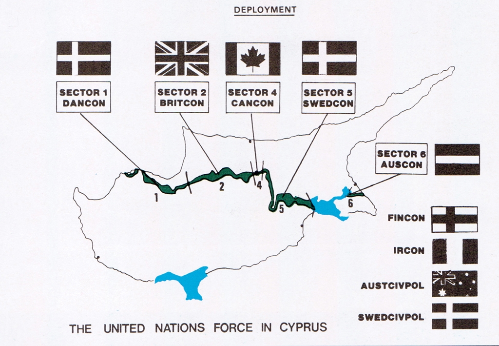 The UNFICYP (United Nations Peacekeeping Force in Cyprus) was set up by UN Security Council resolution 186 on 4 March 1964 to prevent fighting between the Greek Cypriot and Turkish Cypriot communities. Its mission expanded in 1974 following the overthrow of President Archbishop Makarios III by Nikos Sampson, a former EOKA fighter, and his supporters who favoured union with Greece. The Turkish reaction was to declare protection for the Turkish Cypriot community and prevent any Greek union by invading Cyprus and establishing control over the northern part of Cyprus. UNFICYP, since the de facto ceasefire in August 1974, had supervised the ceasefire lines, provided humanitarian assistance, and maintained a buffer zone between the opposing forces. The UN in Cyprus also supported the fullest possible resumption of normal civilian activity in the buffer zone with a particular emphasis on farming, where safe and agreed by all parties. This was a major effort in the Ovgos Valley area.