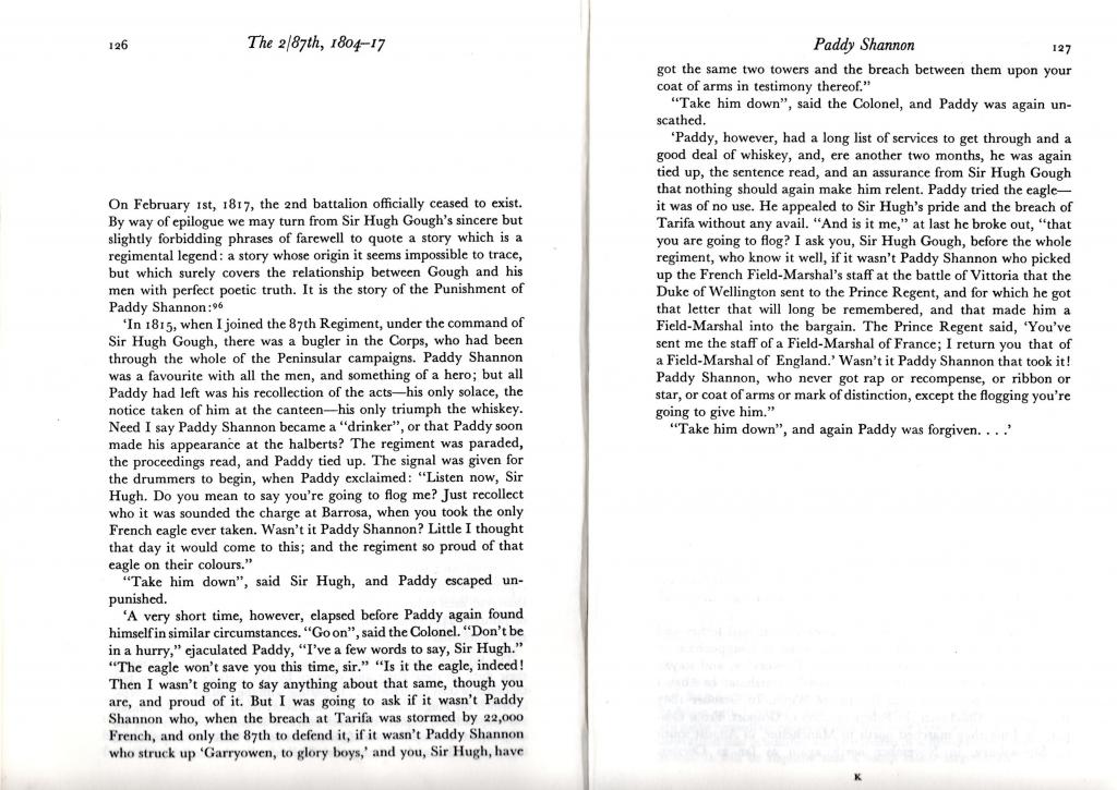 Reforms of the British Army in 1868, included the abolition of flogging as a punishment in peacetime and reserving it as a punishment for use on active service only until, finally in 1888, it was abolished entirely. Below, a record of such punishments and the tale of Private Paddy Shannon from the history of The Royal Irish Fusiliers.