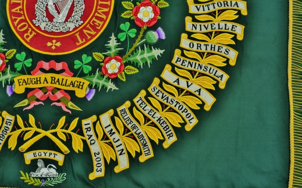 | Detail of a Regimental Colour, The Royal Irish Regiment. |