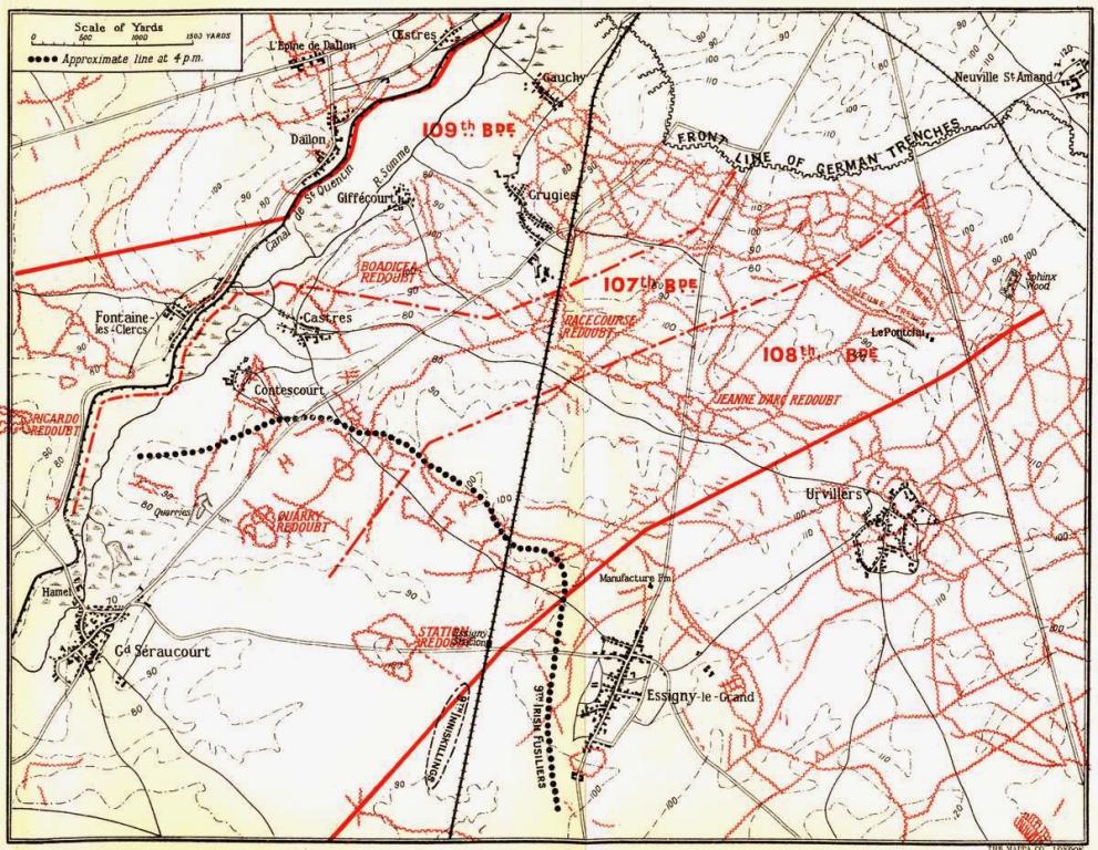 IWM Q56607Among the Irish infantry facing the German spring offensive were the 1st, 7th, 8th and 9th Battalion The Royal Inniskilling Fusiliers; the 1st, 2nd, 12th and 15th Battalion The Royal Irish Rifles and the 1st and 9th Battalion The Royal Irish Fusiliers; the 1st Battalion The London Irish Rifles in another area bore the brunt of a German attack supporting Operation MICHAEL around St Quentin.