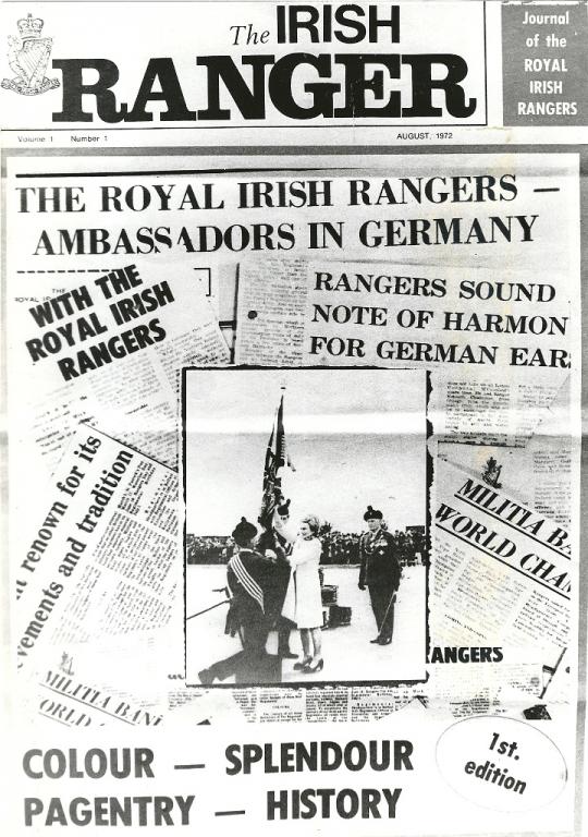 The Regimental newspaper 'The Irish Ranger' was first produced at the Depot in St Patrick's Barracks Ballymena on 1 October 1972 and was edited by Major J O Cave, the Divisional Recruiting Officer.