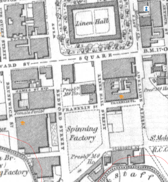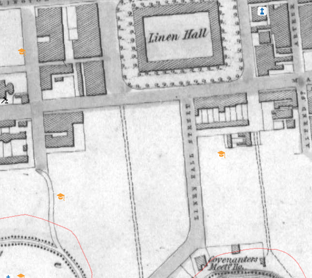 The Linen Quarter had previously been a marshy area, served by the Blackstaff River as it flowed to the Lagan. However, with the expansion of Belfast from the 1830s onwards, this area was eventually drained and became the focus for linen companies, with new offices and warehouses springing up along the newly laid out streets.